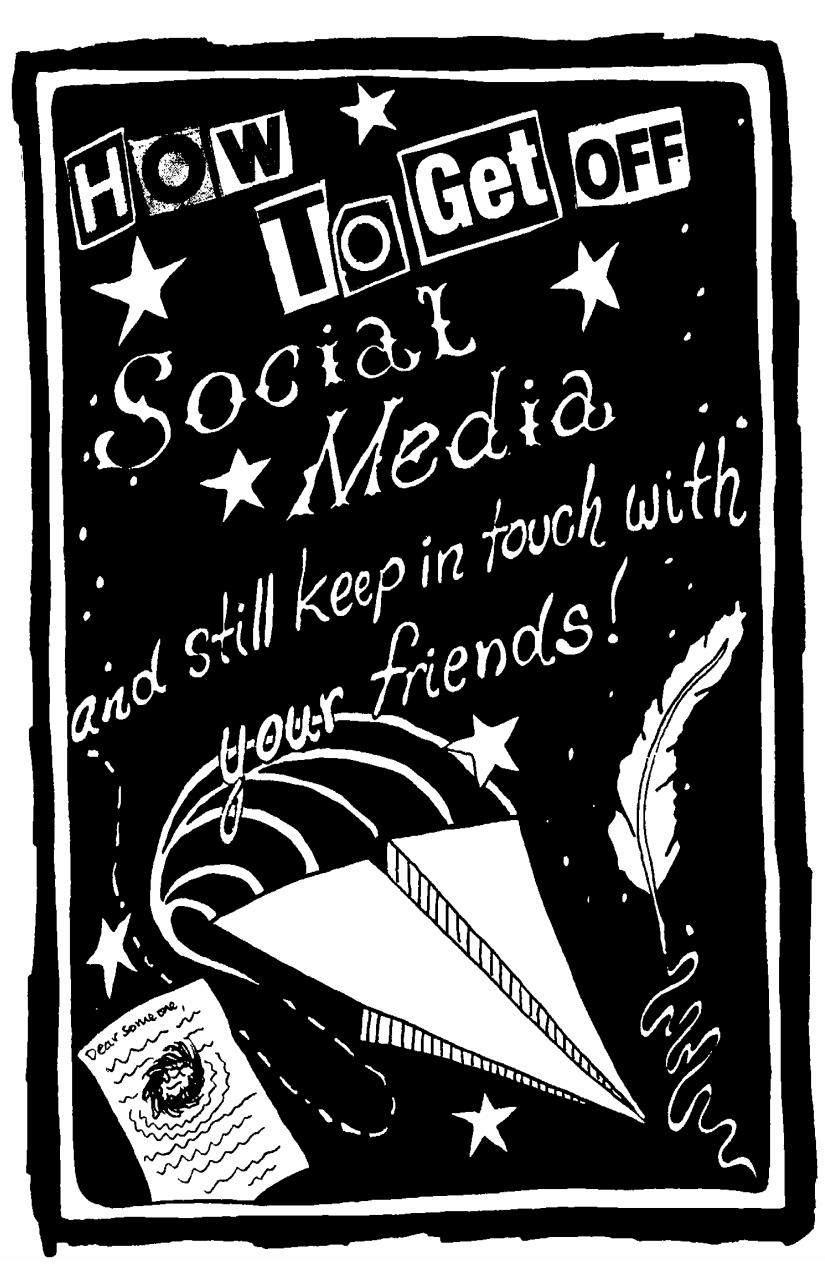 With a strategy for maintaining your relationships outside the confines of the internet, this little zine is part personal reflection on the merits of unplugging and part instruction manual for successfully extricating yourself from the ever-more-nightmarish world of social media. Author Sylvia Friday reflects on the uses of social media, and offers a critique of the ways that social media (especially for artists) has reduced art to a vacuous process of the capitalist cult of productivity. Friday calls for us to embrace snail mail and the beauty of ink and paper as a way to slow down, be creative in new and different ways, and engage more meaningfully with our friends through the process of writing physical letters on actual pieces of paper.